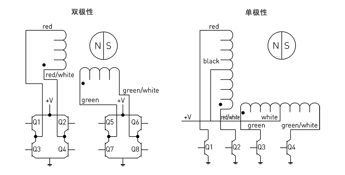 单极性 (unipolar) 和双极性 (bipolar) 是步进电机最常采用的两种驱动架构。